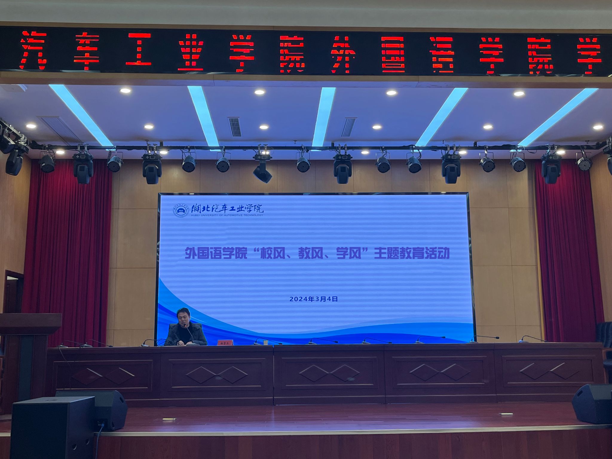 本网讯(文/孟甜)“要树新风、正学风,进课堂、督学风,重自习、领学风,养习惯、促学风,全面引导员工养成良好的学习习惯,充分营造风清气正的育人环境和比学赶超的优良学风。”3月4日,外国语学院学风建设主题教育活动在产教大楼四楼报告厅举行。