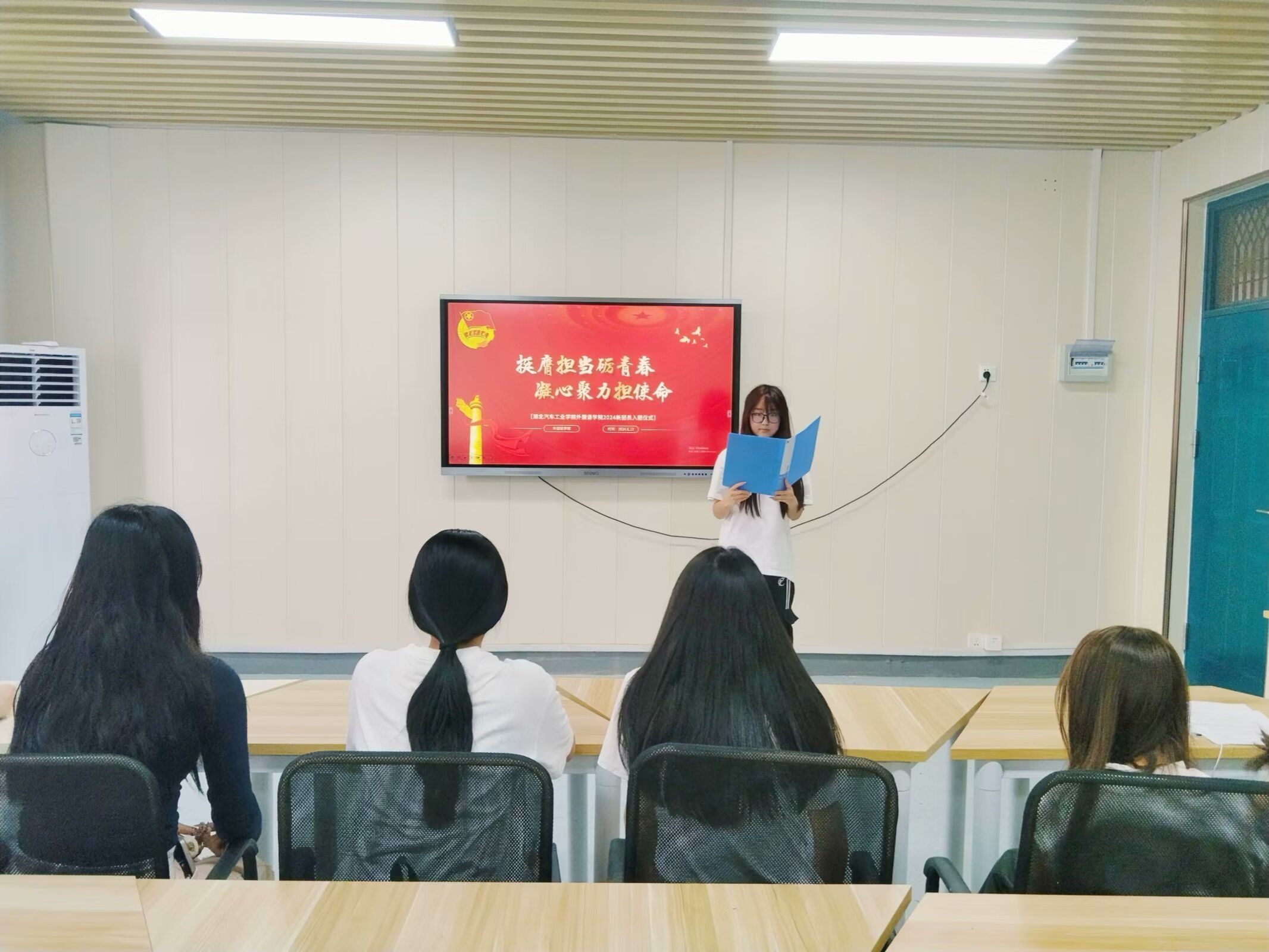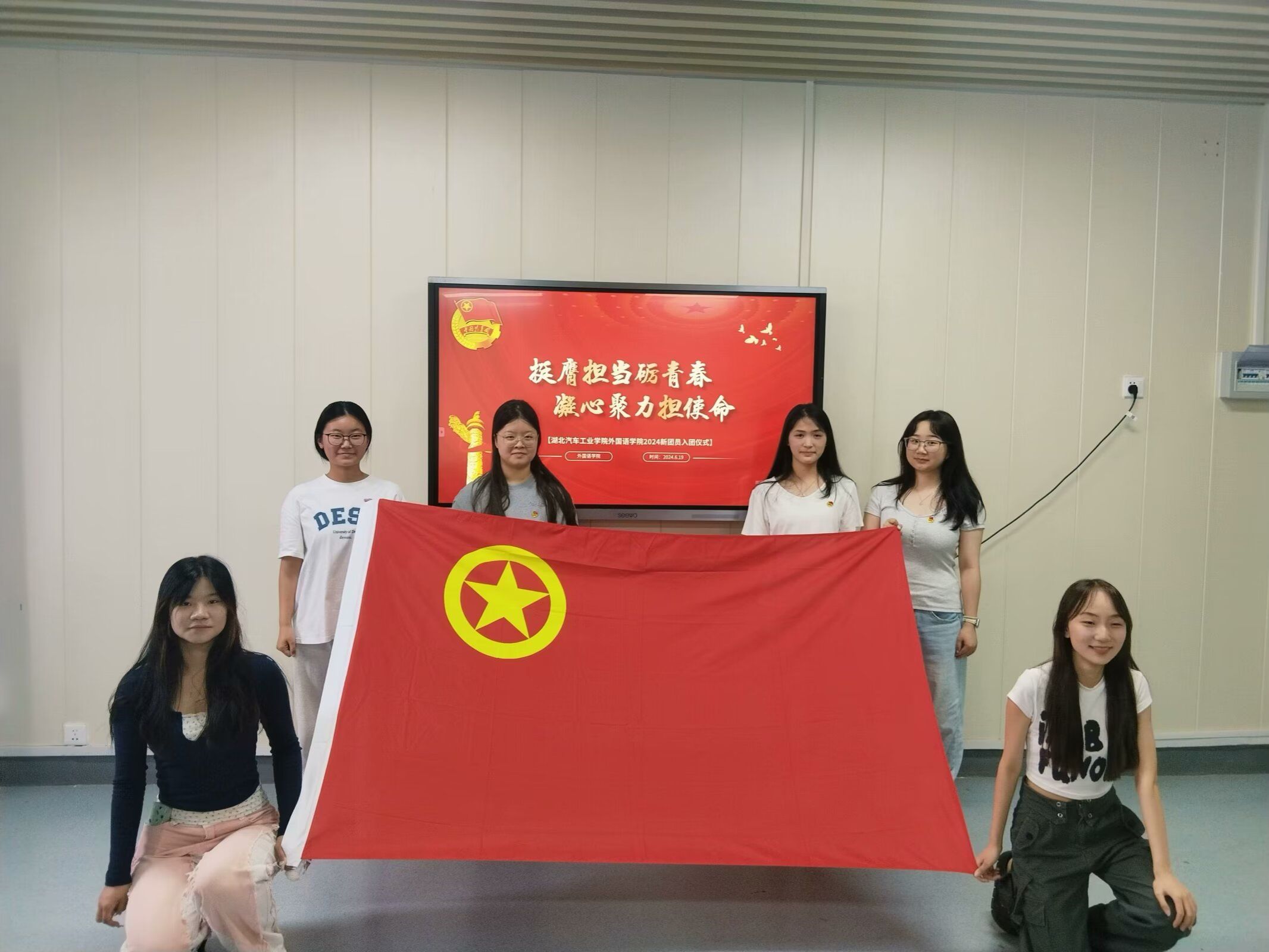 6 月 19 日,外国语学院在3605教室隆重举行入团仪式,为共青团组织注入了新鲜血液,增添了新的活力。此次仪式旨在激励广大青年员工积极投身共青团事业,传承红色基因,在新时代展现新作为。