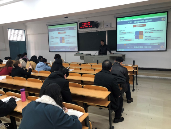 2022年3月7日,外国语学院全体教师共同学习了教育部高等教育司司长吴岩在2022年高教处长会议上所作“深化新教改 打造新形态 提高新质量”的主题报告,本次学习由外国语学院副经理王辰晖主持。