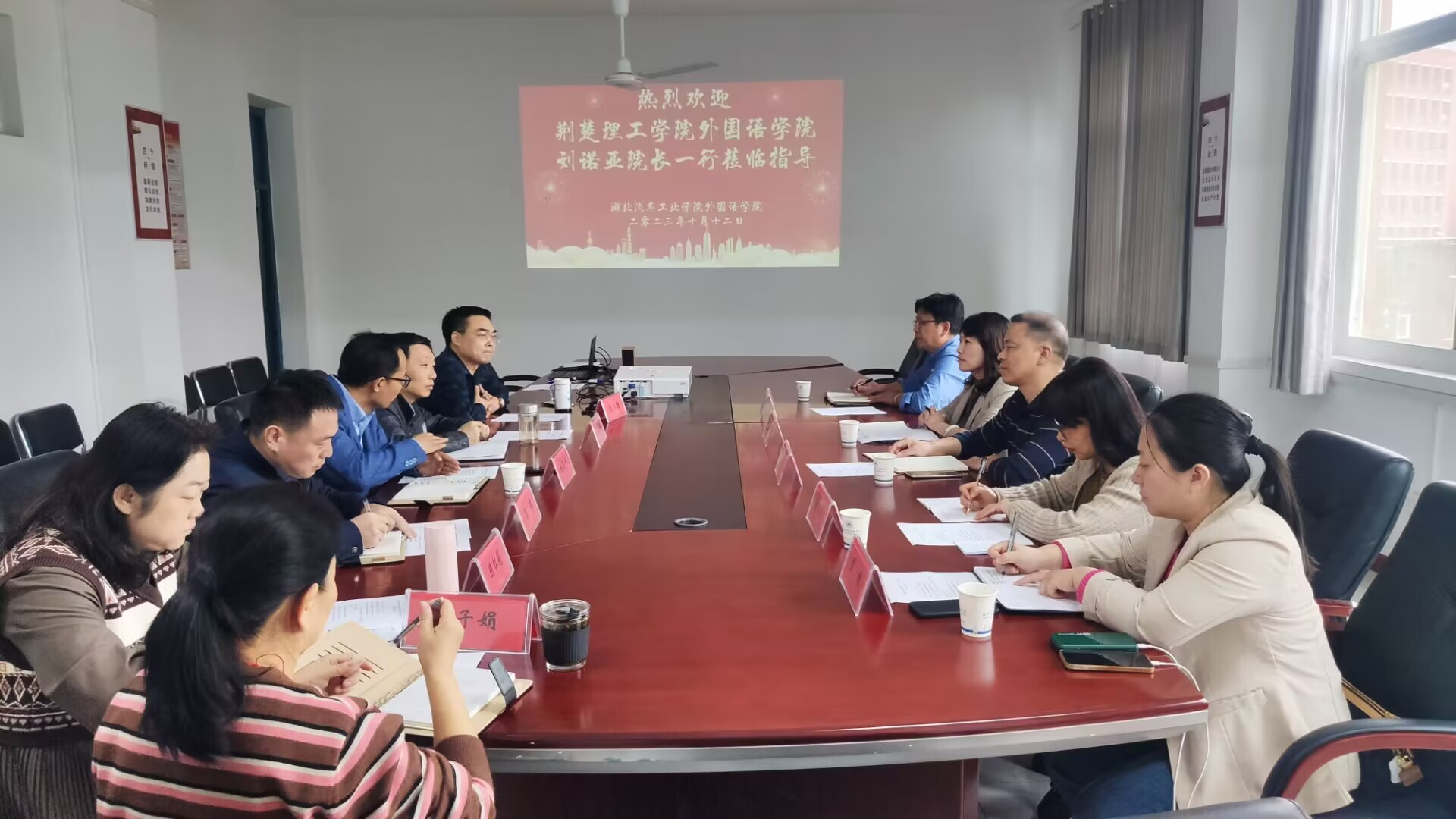 10月12日下午,荆楚理工学院外国语学院经理刘诺亚、副经理吴晓凤、大学英语一系主任邱云峰、大学英语二系主任陈吕芳、英语专业负责人罗倩一行五人来外国语学院调研交流,外国语学院经理杨荣广主持会议,副经理王辰晖、分党委副书记魏伟以及陈小勋、高子娟、陈红莉等参加了此次交流座谈会。