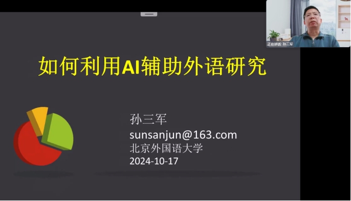 为更好的了解人工智能在外语教学与研究中的应用,普及人工智能知识和实操技能,10月17日晚19点,北京外国语大学英语学院孙三军教授受邀在线上作题为“AI辅助外语教学与研究的路径与方法”主题讲座,外国语学院科研副经理翟全伟主持会议,外国语学院全体教师参会。此次讲座为“人工智能与外语研究”系列讲座中的第二讲,也是外国语学院“智能语言服务现代产业学院”所开展的系列活动之一。