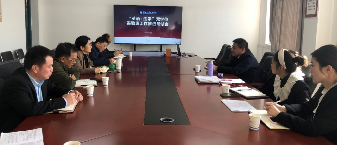 与会学院领导就“英语+法学”双学位实验班的招生、课程设置、班级运行及学籍管理等问题,进行了深入沟通,并就相关细节问题达成一致意见。周明智指出,跨学院跨学科人才培养项目的推动是对接国家战略、助力学院发展的重要举措;万事开头难,怎么推是学院和教师新的挑战,需要学院各领导及教师们共同努力,共同克服困难,要常怀远虑,居安思危,借力借势,扎实做好课程建设和人才培养,聚焦特色,推进高素质复合型人才培养。