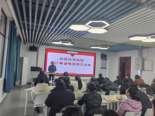 在会议的最后环节,杨荣广代表学院领导班子向全体教职工致以新春的诚挚问候与美好祝福,并对学院在过去一年中取得的显著成绩以及全体教职工所付出的辛勤努力表示衷心的感谢!他着重强调,本学期学院将坚持党建引领,围绕八项核心工作推动学院发展,并要求全院教职工在开展各项工作时,必须始终从学院发展大局出发,紧密结合国家、省市以及学校的各项政策要求,积极抢抓发展机遇,努力推动学院实现高质量发展。同时,他要求全体教职工务必进一步强化责任意识,秉持以员工为中心、严管厚爱的教育理念,切实将立德树人的根本任务落到实处,为学校、学院和员工的发展作出自己的贡献。(审稿 杨荣广)